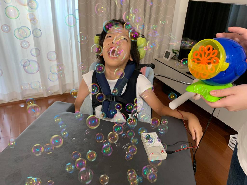 「視線入力」や「タブレット」と検索したらいろんな情報が出てきます。でもそれは身体・知的ともに重度で全盲と診断されているうちの子に合うのか?本当に使えるのか?と悩んでいました。子どもの1日1年は大人のそれより大きいです。今考えるともったいない時間でした。できわかの講師の先生は、「この子にはできない」とは言いません。何をどうしたら使えるか、汗をかき一緒に考えてくれ、小さな変化を喜んでくれます。知識やテクニックだけではない、子どもの心の成長に欠かせない「できた喜び」「お得感」の大切さを教わりました。できたときの子どもの笑顔は周りの大人の価値観を変える力をもっています。