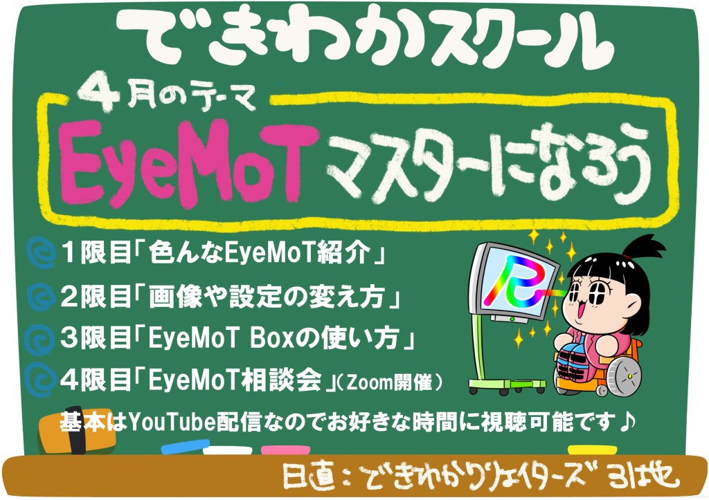 4月のテーマは「EyeMoTマスターになろう」です。視線入力のスタートで最も活用されている視線入力訓練ソフトEyeMoT!