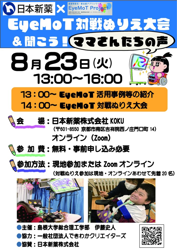 『【日本新薬提供】EyeMoT 対戦ぬりえ大会&聞こう!ママさんたちの声』を開催します!今回は京都府に本社を置く製薬会社「日本新薬株式会社」の共催です!