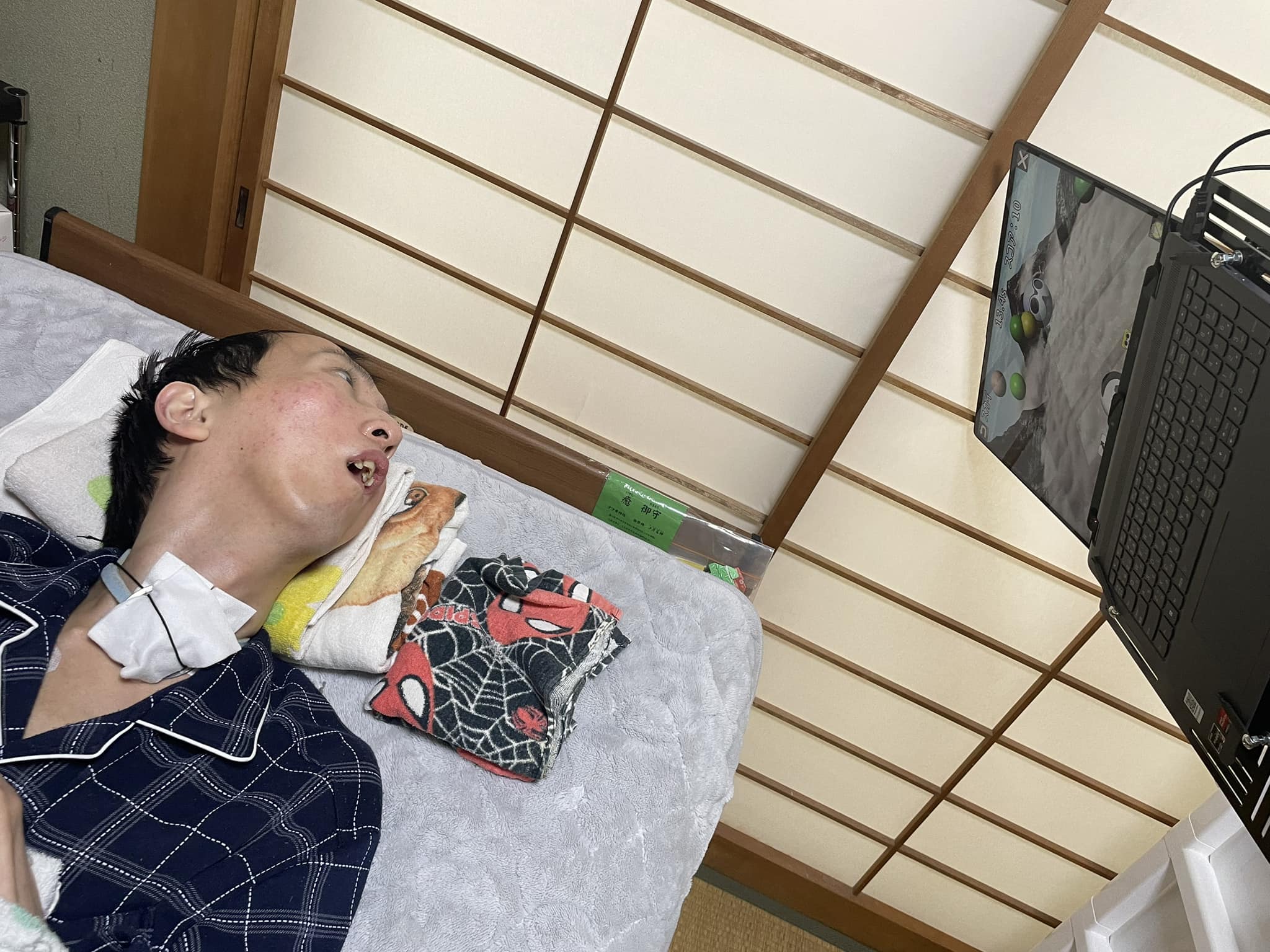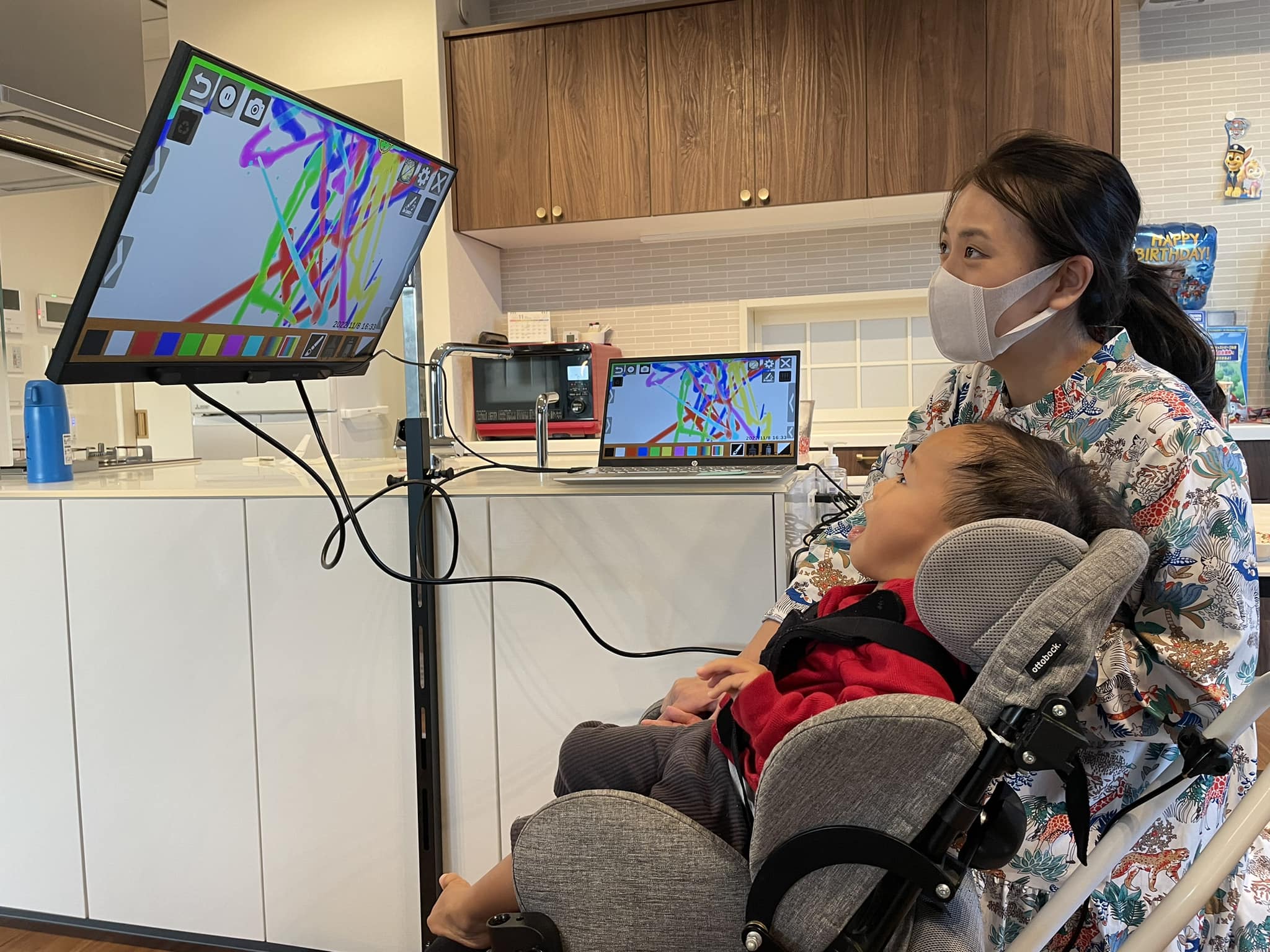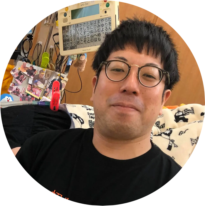 作業療法士引地が自宅に伺い、機器の体験や設定を支援します。コミュニケーション機器からゲームまで、その人の「できる」を一緒に見つけます。