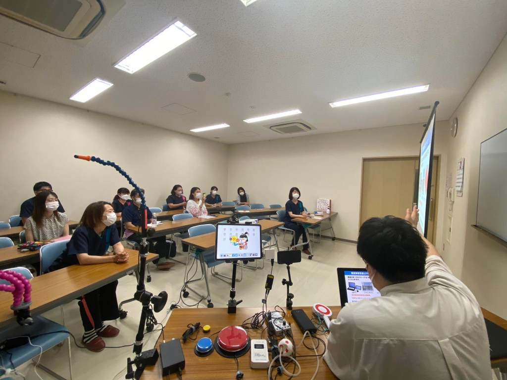 学校、病院、デイサービス、周囲の方との集まりなど、色々な場での研修会を実施します。研修会内容はご希望に合わせてオーダーメイドで構成します。機器の活用方法から、実際に活用されている方達の相談など、様々なご希望に沿って対応いたします。オンラインでの研修会、対面での研修会や体験会も可能です。(※感染状況によりご希望に添えない場合もございます。)